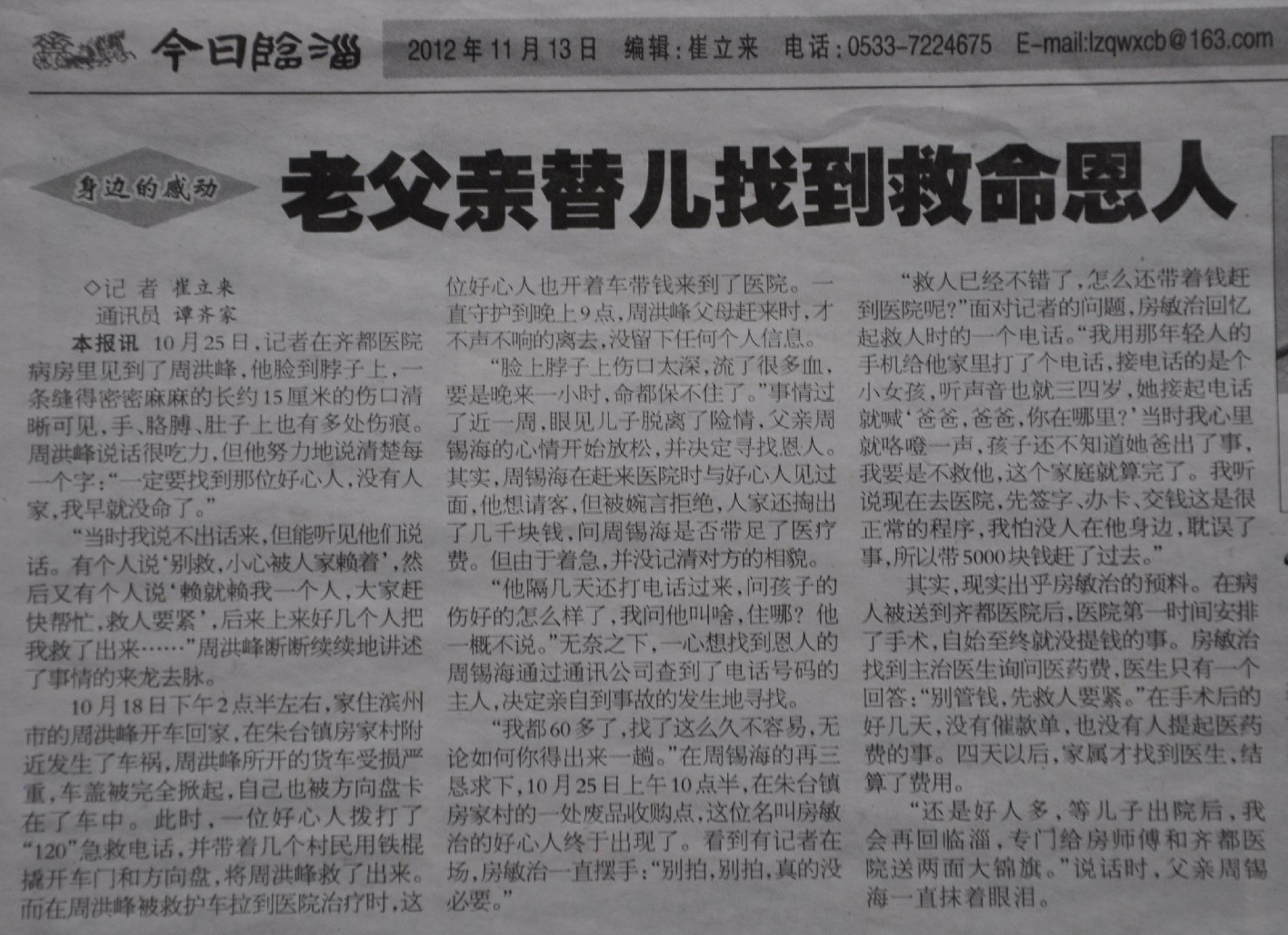 2012年11月13日,今日临淄刊文